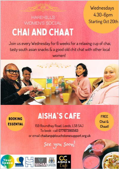 This October saw the start of a new meeting for local women in Harehills, the Harehills Women’s Social Chai and Chaat, meeting every 6 weeks, it’s an opportunity for chit chat and with a relaxing cup of chai and South Asian snacks.