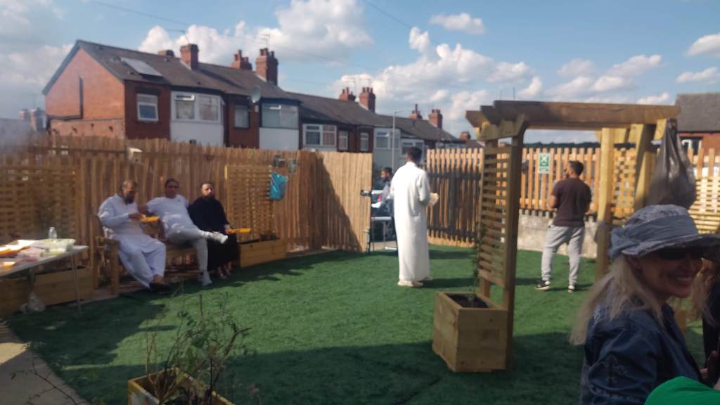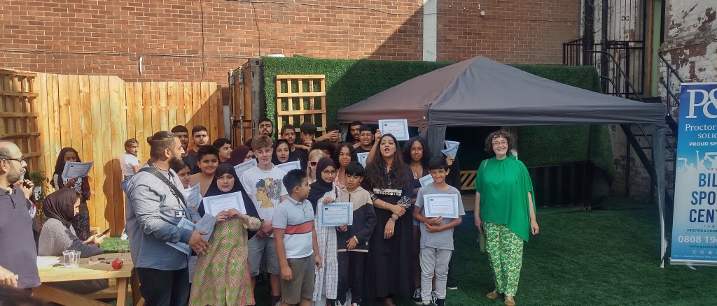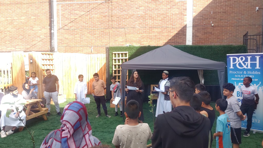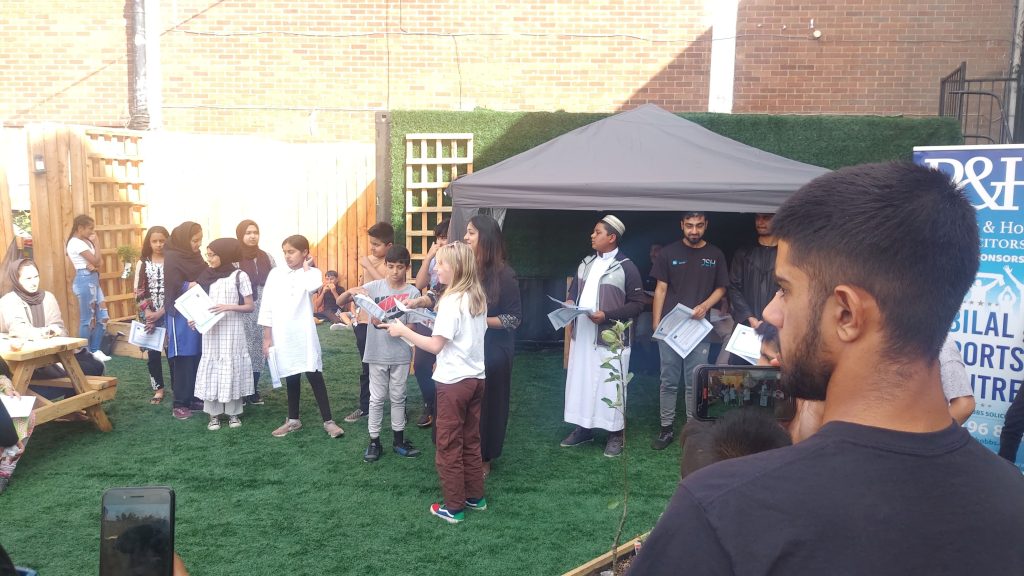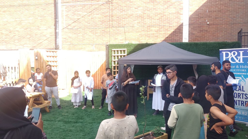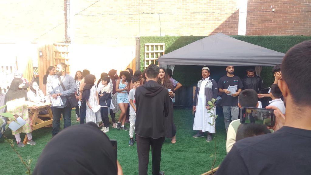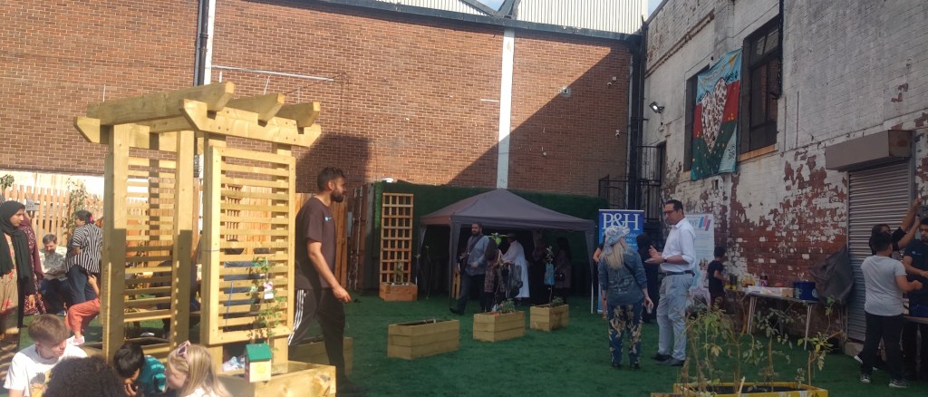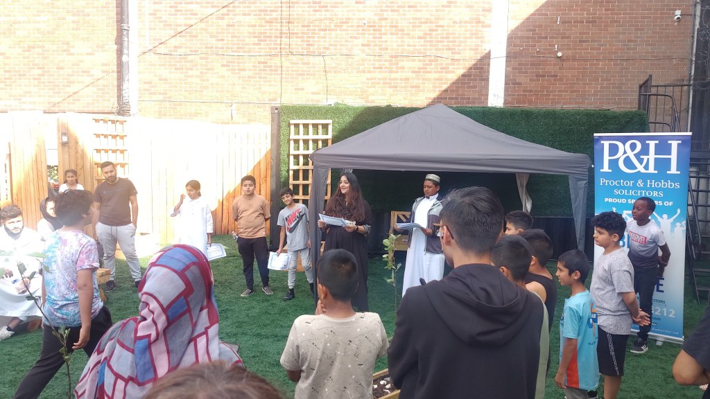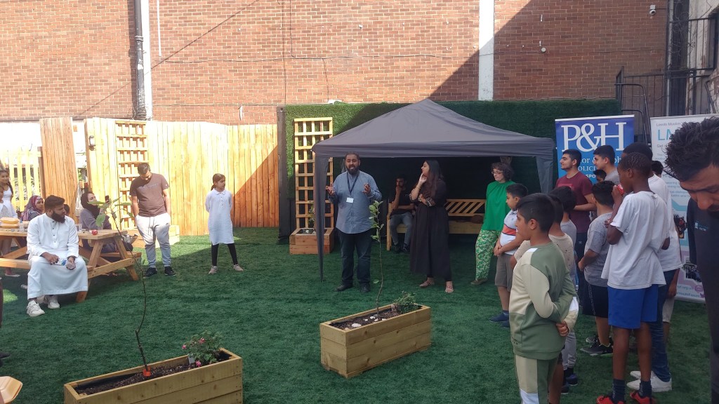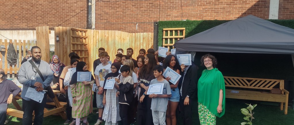 Amazing weather deserving of a grand garden party to open such a lovely space. So many people were there, and Councillor Salma Arif was there to cut the ribbon and later present certificates to the young people who have done so much.