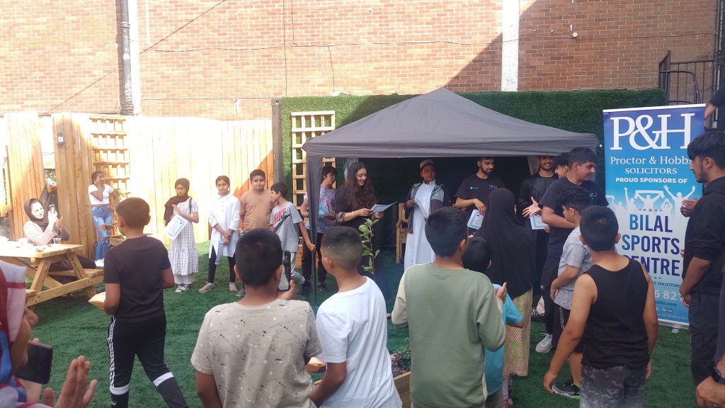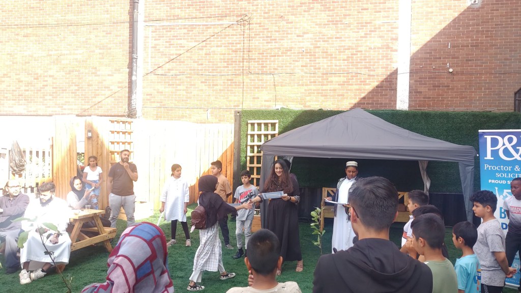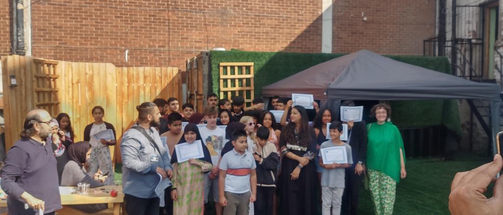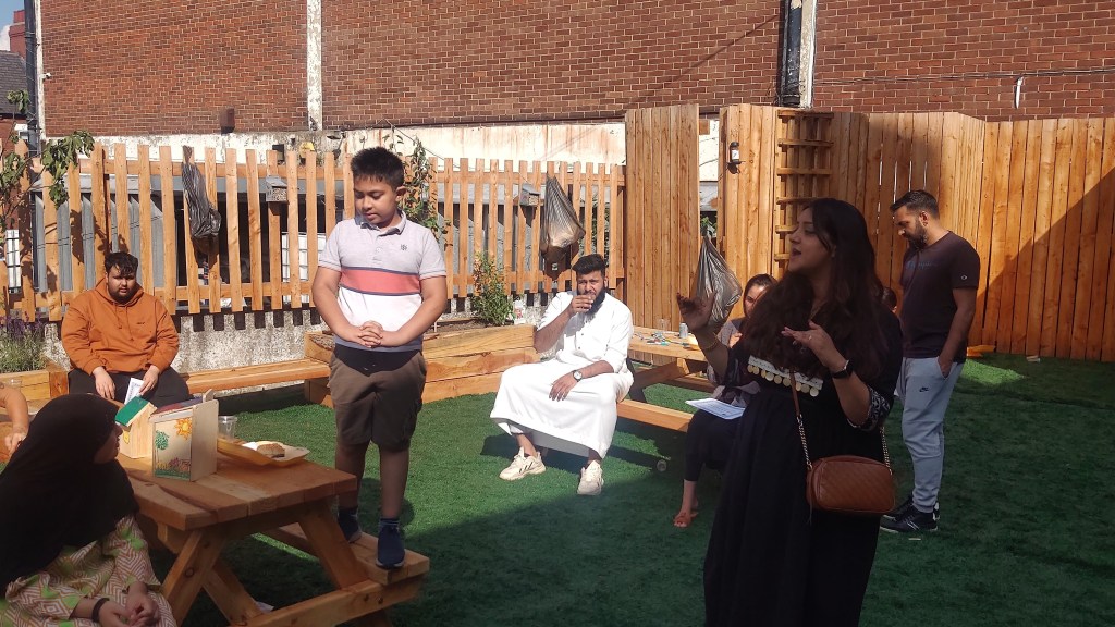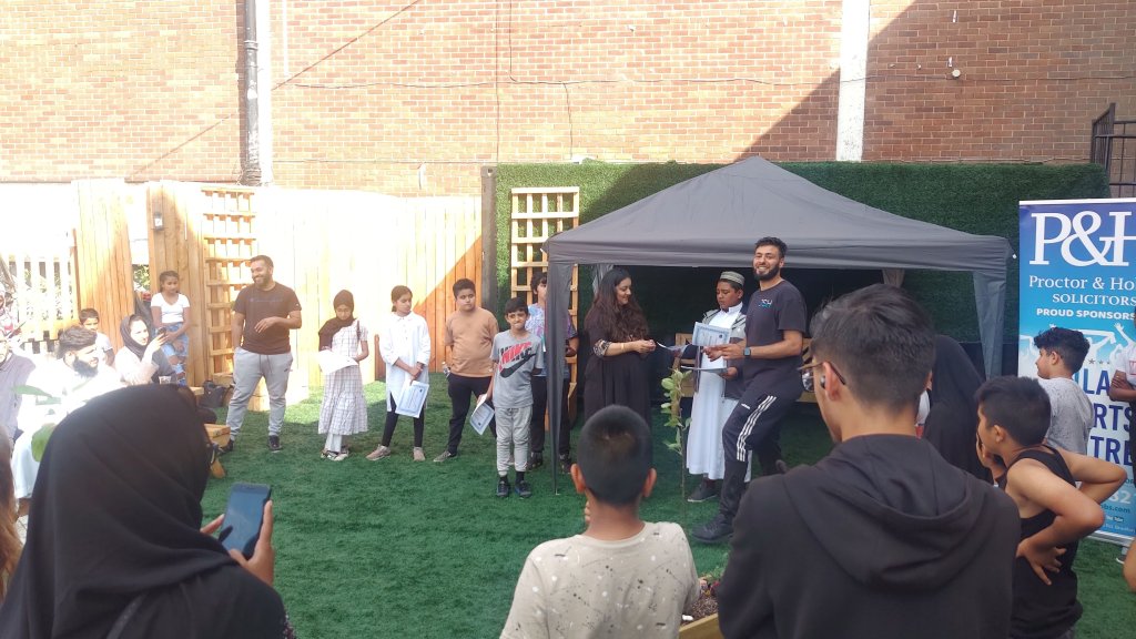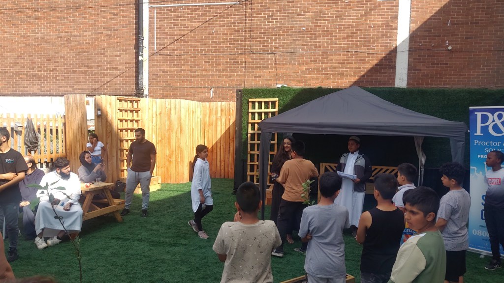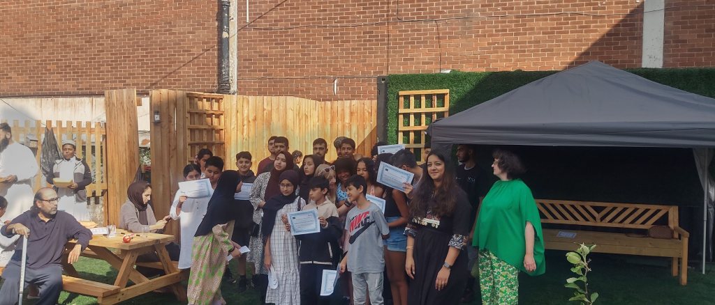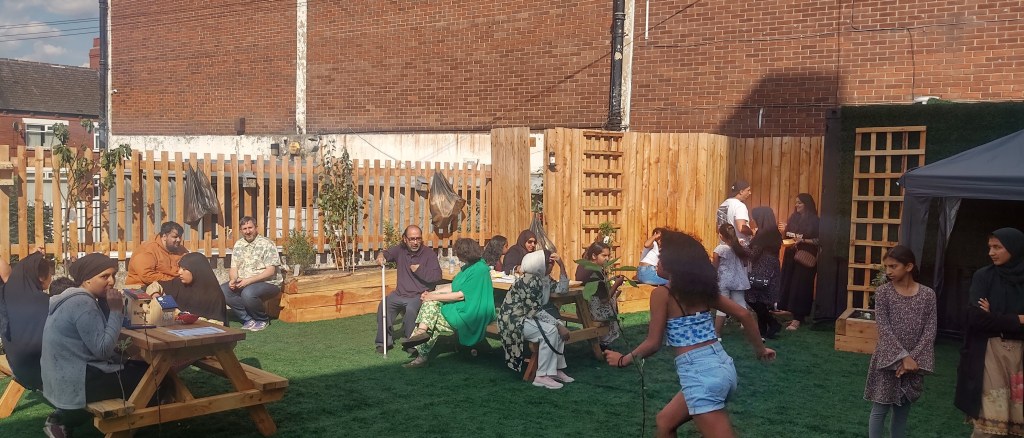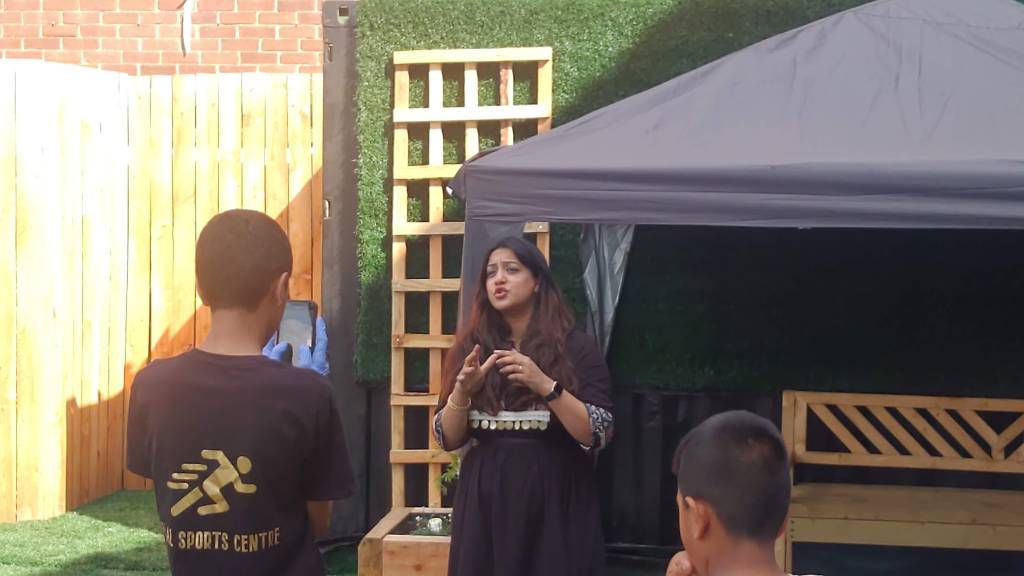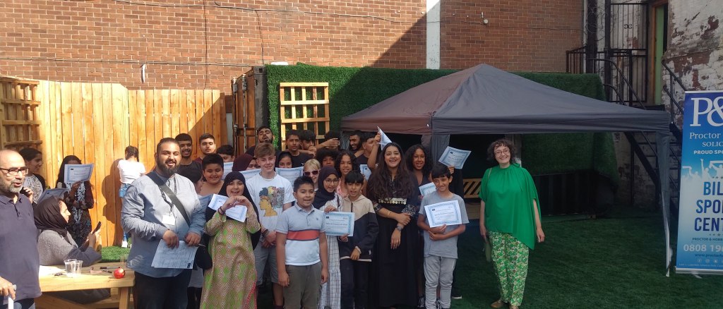 Amazing weather deserving of a grand garden party to open such a lovely space. So many people were there, and Councillor Salma Arif was there to cut the ribbon and later present certificates to the young people who have done so much.