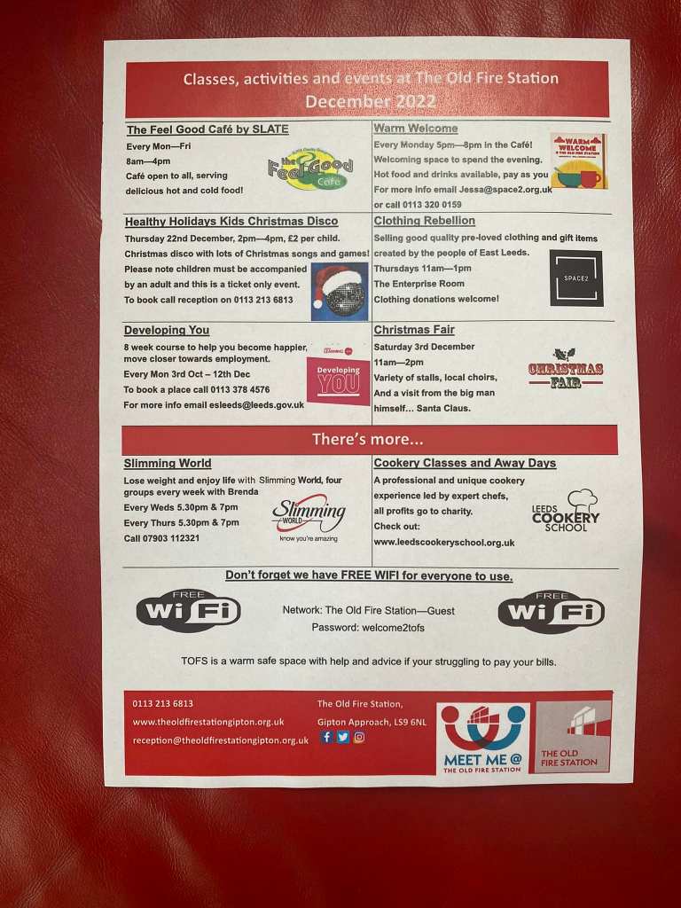 Back straight away to St Aidan’s, on top of their fantastic FoodShare, they are opening their doors on Tuesdays to provide a warm space in a time when many can’t afford to heat their homes.