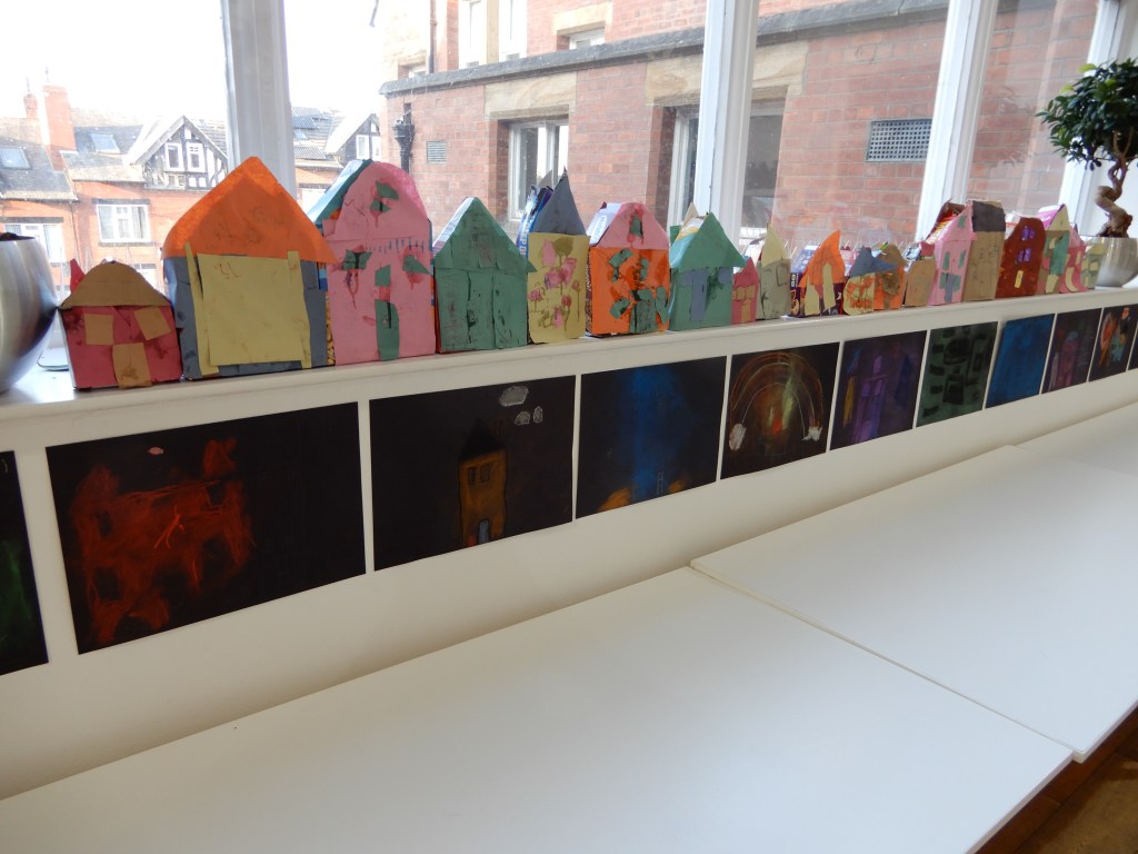 So I went along to the opening night and found a unique, truly local and heartwarming celebration of Harehills, with stories of its housing and its residents throughout the ages, artistic representations of our lovely back-to-backs produced by local school children in a variety of styles and techniques, a vast tapestry, art from talented adults, and unique films.