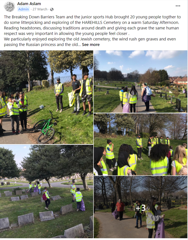It was a tremendous and successful effort to clean up the cemetery and see a bit of Leeds, which many people don’t see. The views were amazing from the graveyard on the hill, the history around poignant, and the young people from Breaking Down Barriers and Junior Sports Hub showed how respectful and fantastic the young people of Harehills can be.