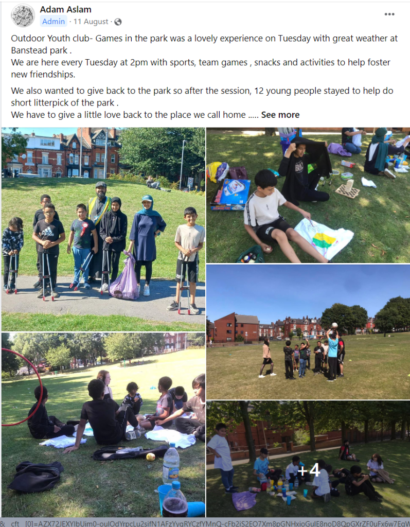 In March, a gathering was arranged before their regular weekly session, at the time at St Cyprian’s, to do a litter pick in Harehills Cemetery alongside Junior Sports Hub. Around 20 young people came along and armed with high-vis jackets, litter pickers and purple bags set about in small groups sweeping through the cemetery.