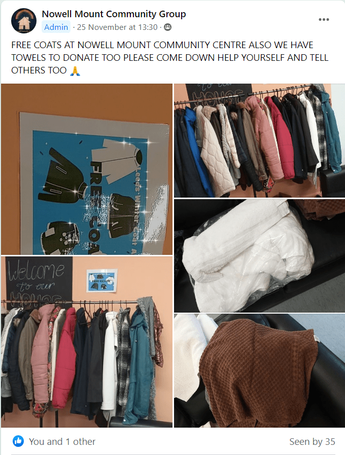 As we come into the coldest part of the year, facing an insurmountable cost of living crisis for many, as mentioned in the warm spaces and food entry on day 5, they have a collection point for warm coats and towels. They also have a Tea Time Club for a free meal to support people during the cost of living crisis.