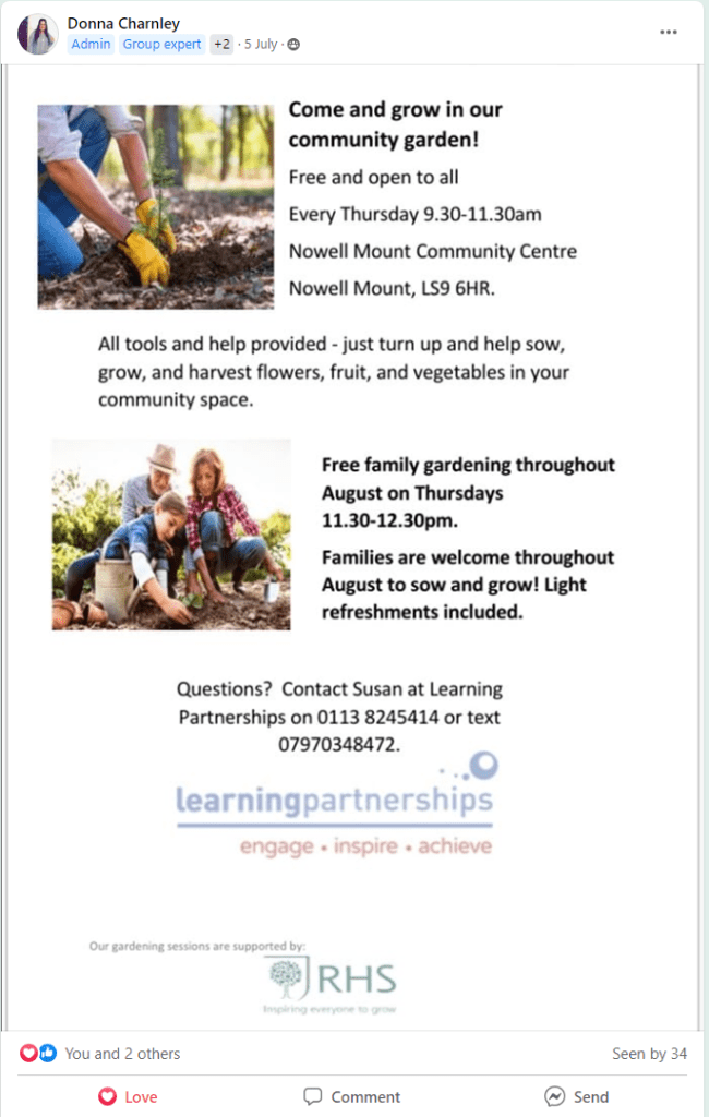 When I tell people, I’m writing a Good News Advent Calendar about Harehills, some believe this would be hard to do, that there isn’t enough to fill it. I actually have the opposite problem. There’s so much to cover. Regrettably, one of the things missed last year was the Nowell Mount Community Group, but Donna Morris, not this year.