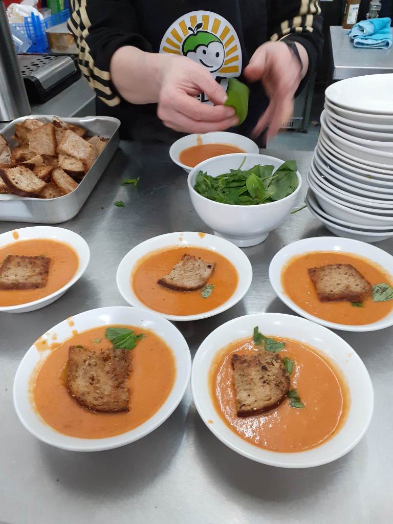 But let’s start with the food – because if you haven’t guessed by now, I love food, and what FoodCycle can do with a random selection of ingredients delivered on the day is impressive. It’s vegetarian, as vegetables and vegetarian food are easier to get, and it’s more open to more palettes – and you can do such exciting things with them.
