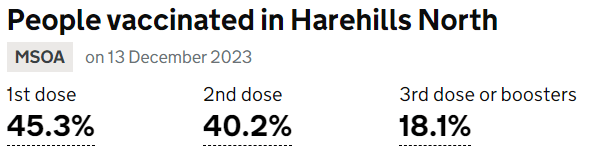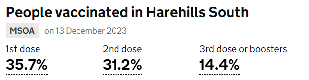 Throughout the pandemic, in my own limited way, I did my best to promote testing and vaccines, as well as tracking down stats relevant to Harehills.