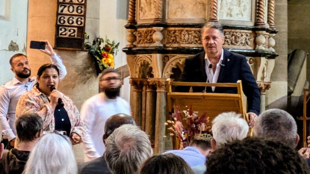 In the wake of the unrest that shook Harehills in July, a remarkable gathering took place on the evening of July 23rd at St. Aidan’s Church. Organized by Green Party Councillor Mothin Ali, the “City of Belonging” event drew a diverse crowd of 200-250 people, representing all ages and backgrounds from Harehills and surrounding areas, united in their desire to heal divisions and envision a brighter future for their community.